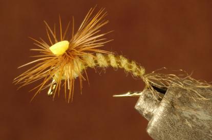 This is one of my patterns for Pale Morning Dun emergers. The PMD imitates the common light-bodied varieties of Mayflies. These Mayflies are very common in late spring and early summer.